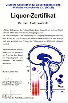 Der Laborleiter Prof. Dr. med. Piotr Lewczuk ist Mitglied des erweiterten Vorstandes der DGLN (Deutsche Gesellschaft für Liquordiagnostik und Klinische Neurochemie e.V.) und wurde mit dem Liquor-Zertifikat ausgezeichnet.