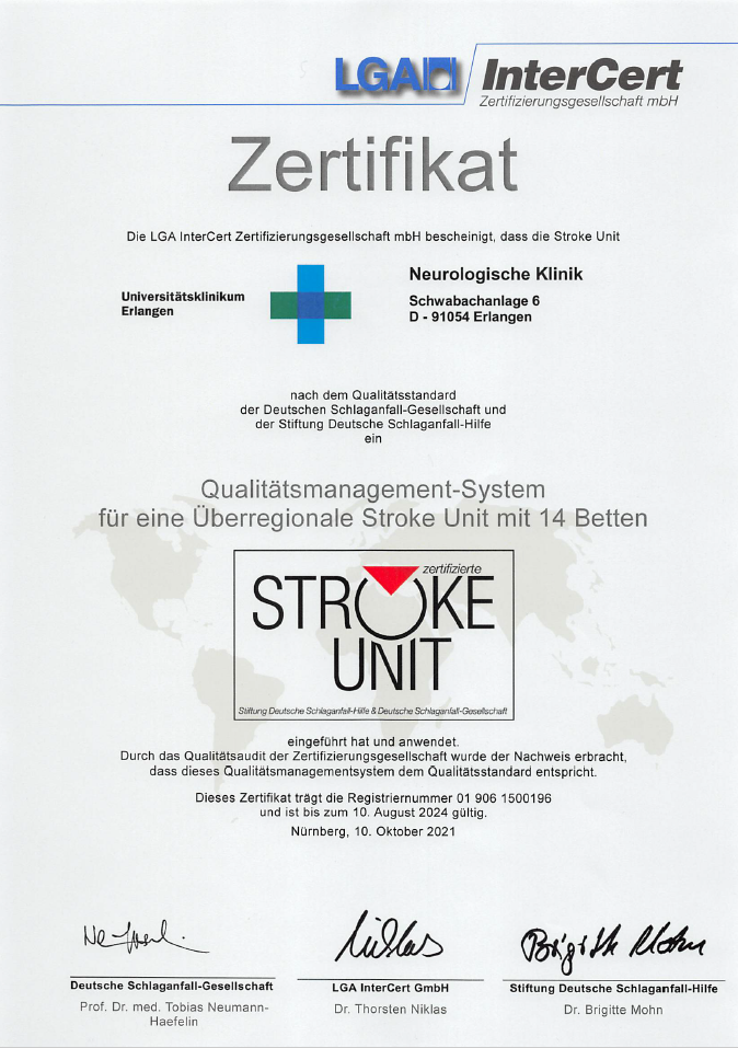 Die besitzt seit Ende der 1990er-Jahre ein Qualitäts-managementsystem und wurde im Jahr 2000 nach DIN EN ISO zertifiziert. Sie war damals die erste Neurologische Klinik in Deutschland, die ihre internen Qualitätsmanagementabläufe einer externen Überprüfung unterziehen ließ.